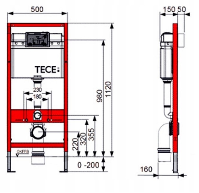 - Рамка TECE + бачок прихованого монтажу + кронштейн