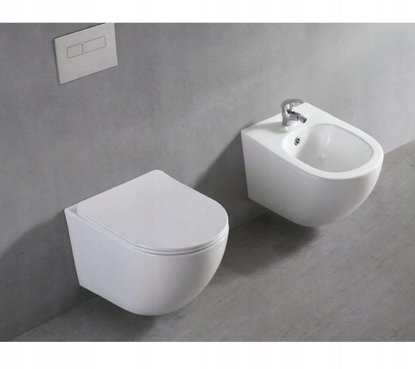 Акуратний овальний унітаз і біде. Покриття NANO, невидиме неозброєним оком, забезпечує бездоганну чистоту та антибактеріальний захист усієї поверхні.