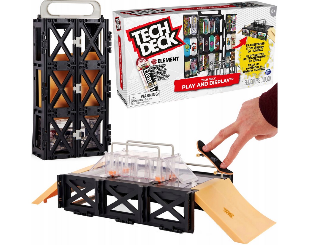 Набір складається з футляра, який стане ідеальним місцем для зберігання вашої колекції мініскейтбордів. Він вміщує 24 дошки, тож ви можете брати улюблені скейтборди з собою в подорож. Його можна розкласти, щоб перетворити на рампу з веселим ящиком і поручнями для виконання трюків. Скейтборд із серії ELEMENT, що входить у комплект, подарує масу задоволення.