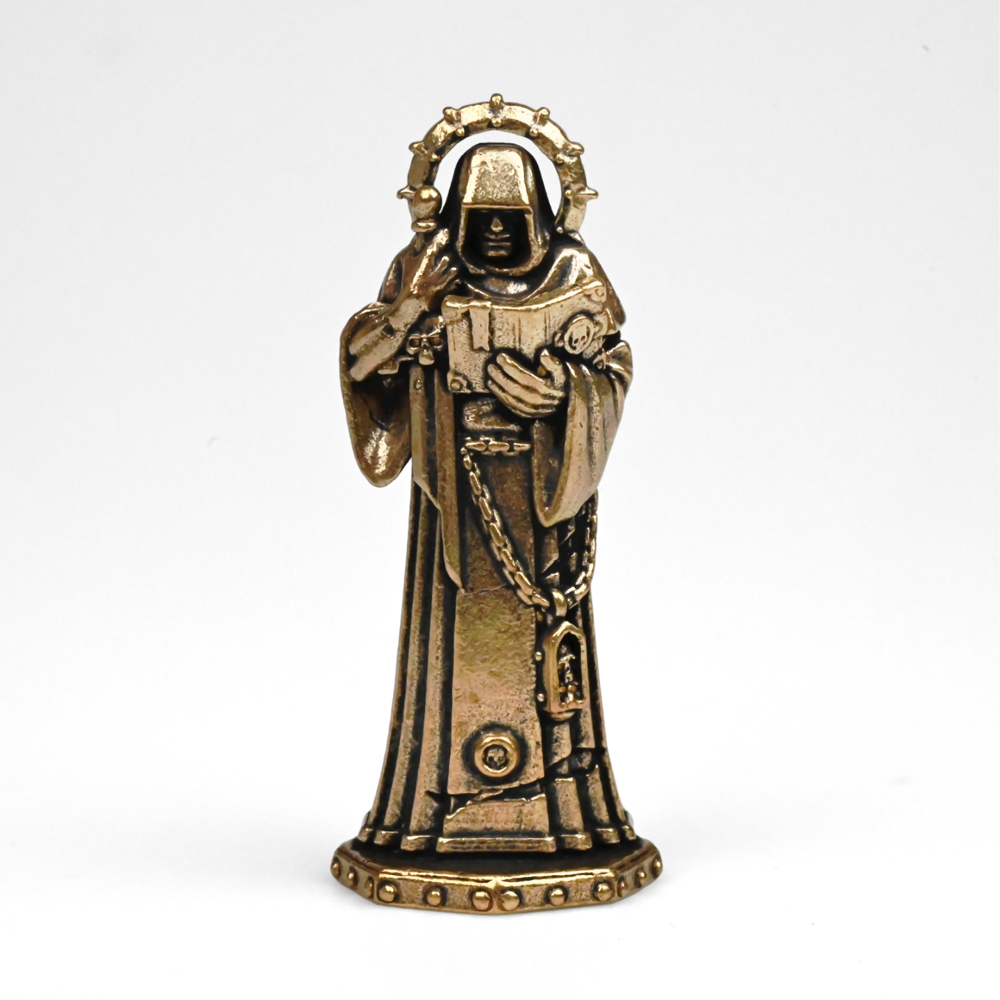 Пориньте в похмурі глибини далекого майбутнього з цією колекційною фігуркою Tech Priest, незамінним артефактом для будь-якого ентузіаста Warhammer 40k, який хоче відсвяткувати Omnissiah. Ця вражаюча 12-сантиметрова металева статуетка втілює послідовників Бога-Машини в його незвичайній величі, зображуючи священика в капюшоні, оточеного священними механіками та прикрашеного характерним коміром із механізмом — символом Адептус Механікус. Виготовлений із міцного металу зістареного коричневого кольору, він випромінює реліктовий характер, гідний стародавніх кузень Марса. Фігура в мантії тримає механічний фоліант, прикрашений гравіюванням і печатками чистоти, а складні ланцюжки та мотиви шестерень стікають уздовж габіту, відображаючи культ Машини та його відданість знанням і технологіям. Міцна основа з клепаними деталями додає стійкості та нагадує індустріально-готичну архітектуру ампіру. Будучи колекційним технічним священиком, ця фігура повністю відображає стоїчний спокій і таємничу мудрість кібернетичних священиків, що робить його вражаючим товаром Warhammer 40k для будь-якого відданого колекціонера. Незалежно від того, чи він прикрашає вівтар для хобі, стоїть поруч із Легіонами Титанів чи служить символом вірності Омнісії, він випромінює похмуру пошану Адептус Механікус у кожній деталі.