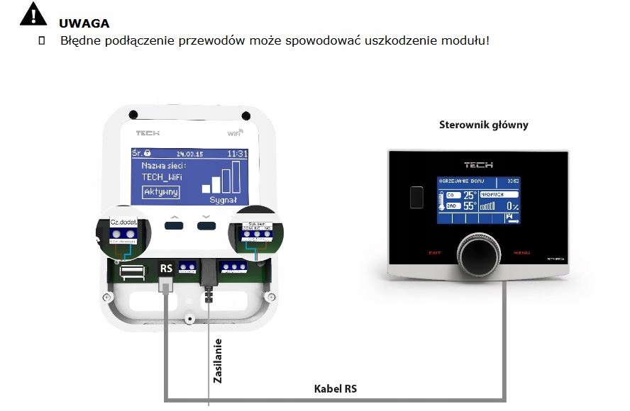 При виборі пристрою для котла, який має контролер, перевірте, чи пристрої будуть співпрацюватив RS-зв'язку.