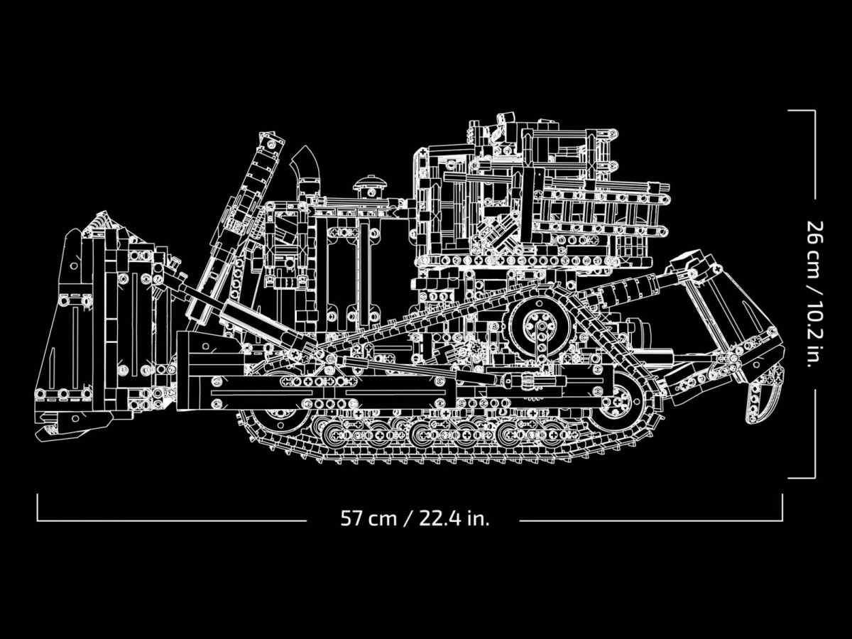 - Великий бульдозер із програмним керуванням LEGO Technic 42131 Cat D11 Набір дозволяє дорослим будівельникам побудувати потужну конструкцію машини з численними деталями.