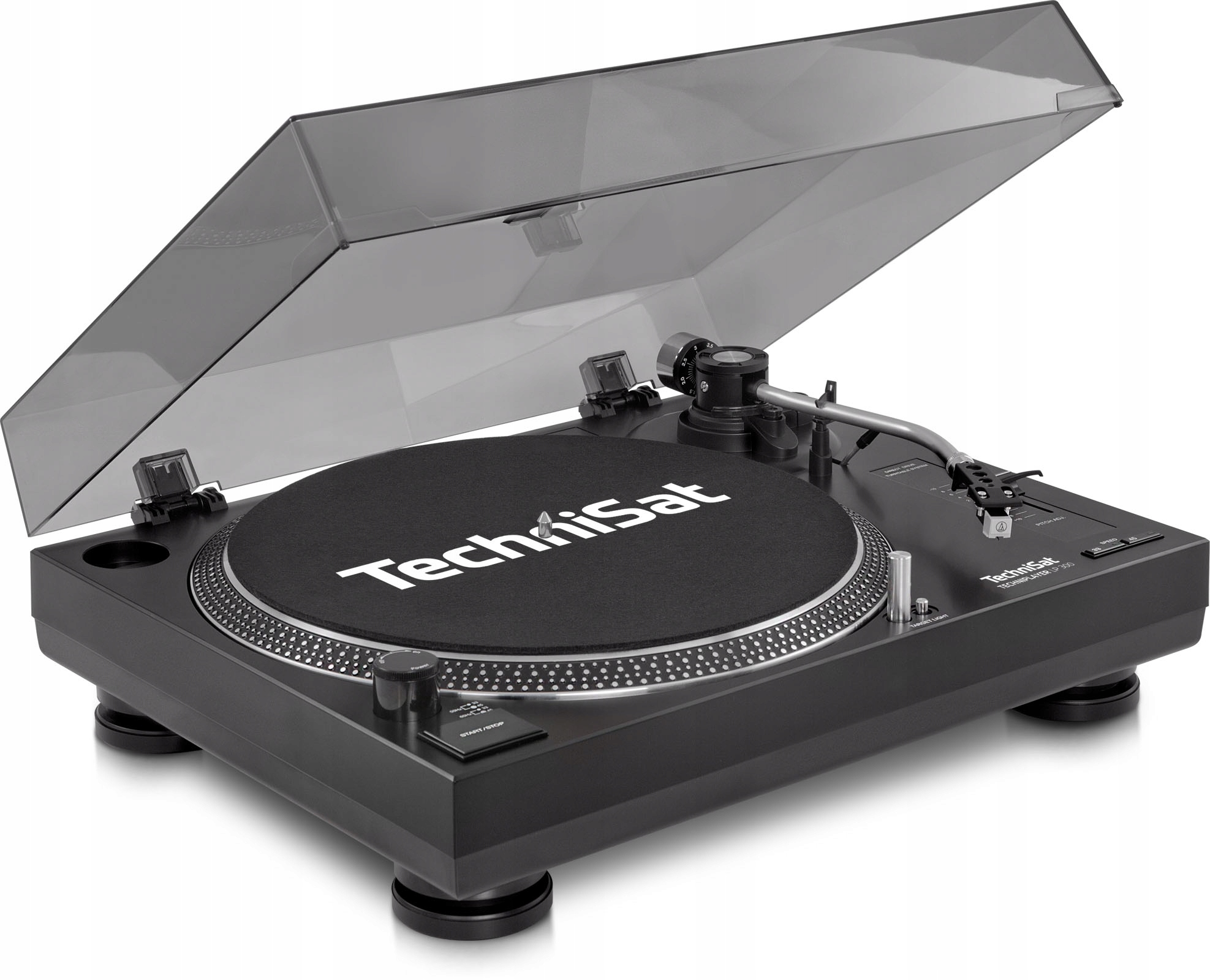грати чудову якість і запрошує як професіоналів, так і початківців на спонтанний сеанс подряпин завдяки керованому кварцу Direct Drive. Кастовий поворотний стіл з алюмінієм забезпечує високу якість. Крім того, обертова таблиця має підсвічування голки, регульований тиск, збалансоване плече та функція антикутата . Якщо ви завжди хотіли випробувати свою колекцію у вигляді mp3 -файлів на ПК або смартфоні, ви можете оцифровувати улюблені записи вінілу за допомогою порту USB на звороті пристрою. Відповідне програмне забезпечення постачається з поворотним столом. Ви можете підключити Techniplayer LP 300 до введення поворотного столу або aux-in (аудіо) через комутаційний підсилювач грамофона.
