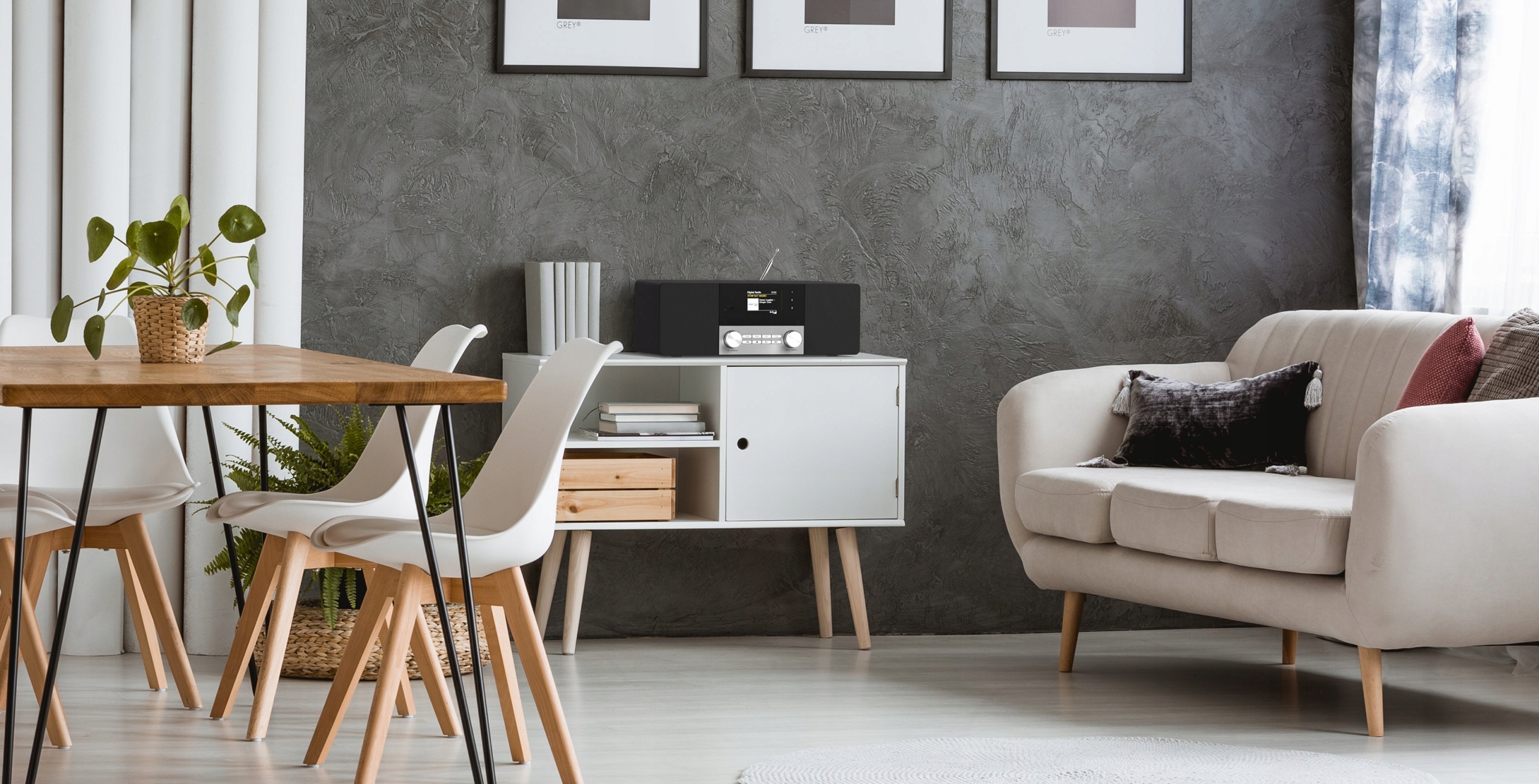 Digitradio 3 пропонує чудовий звук. Цифрове радіо має два 10-ватні динаміки від аудіоспеціалістів ELAC, які завдяки оптимізованому розташуванню забезпечують ідеальний стереозвук незалежно від того, де ви знаходитесь у кімнаті. Digitradio 3 забезпечує збалансований звук, який можна налаштувати за допомогою еквалайзера відповідно до індивідуальних звукових уподобань.