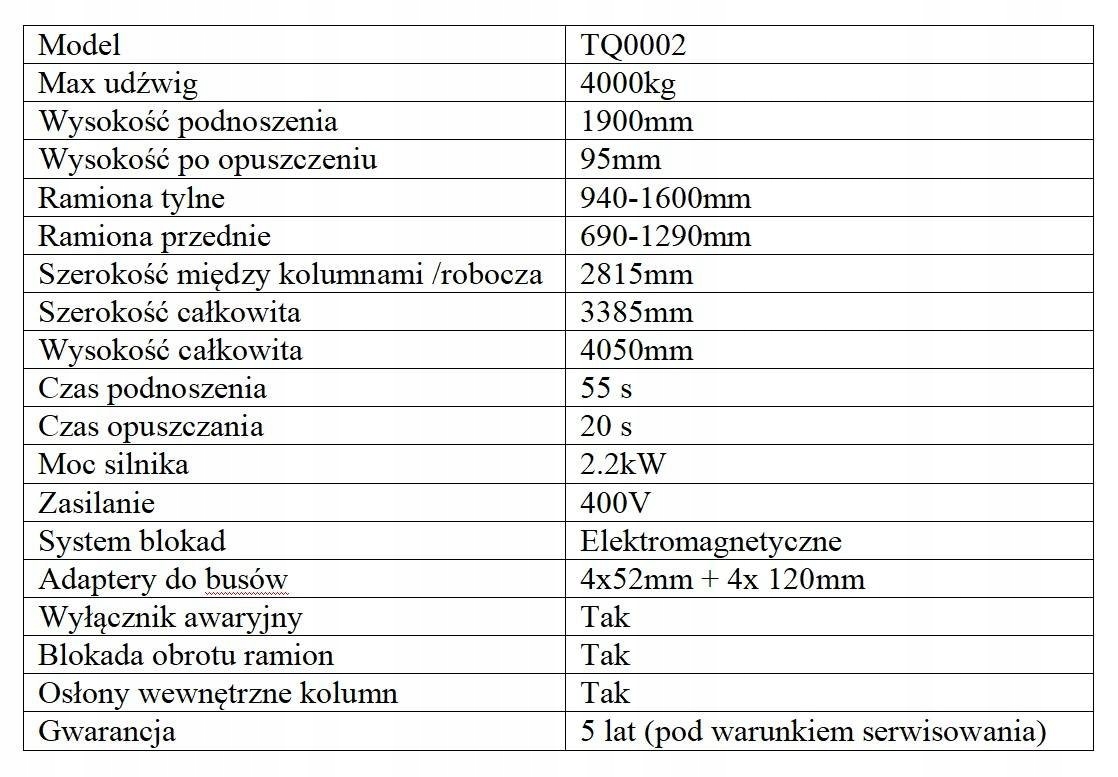TECHWAR Podnośnik dwukolumnowy automat 4000kg z łączeniem górnym 4M TQ0002