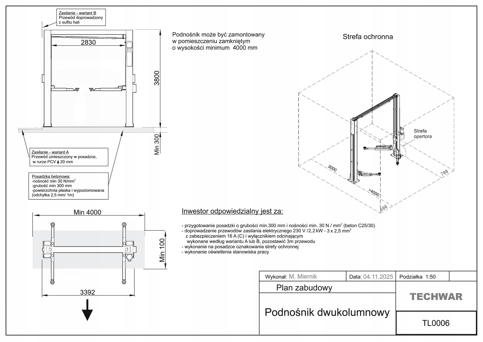 Автоматичний двохколонковий підйомник з верхнім підключенням 4T TL0006-230V-TECHWAR