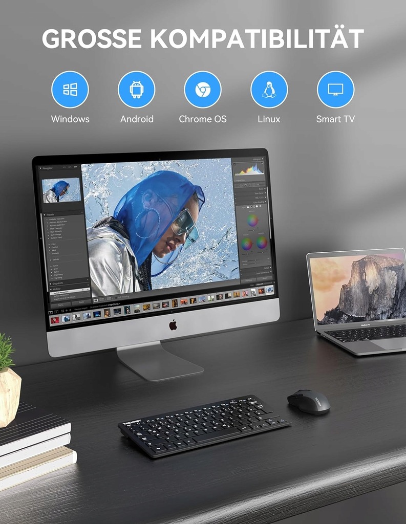 - Надлегка та тонка клавіатура з передовими бездротовими технологіями 2,4 ГГц від TeckNet. Водонепроникна клавіатура з тихими діагональними клавішами забезпечує зручне положення для набору тексту.