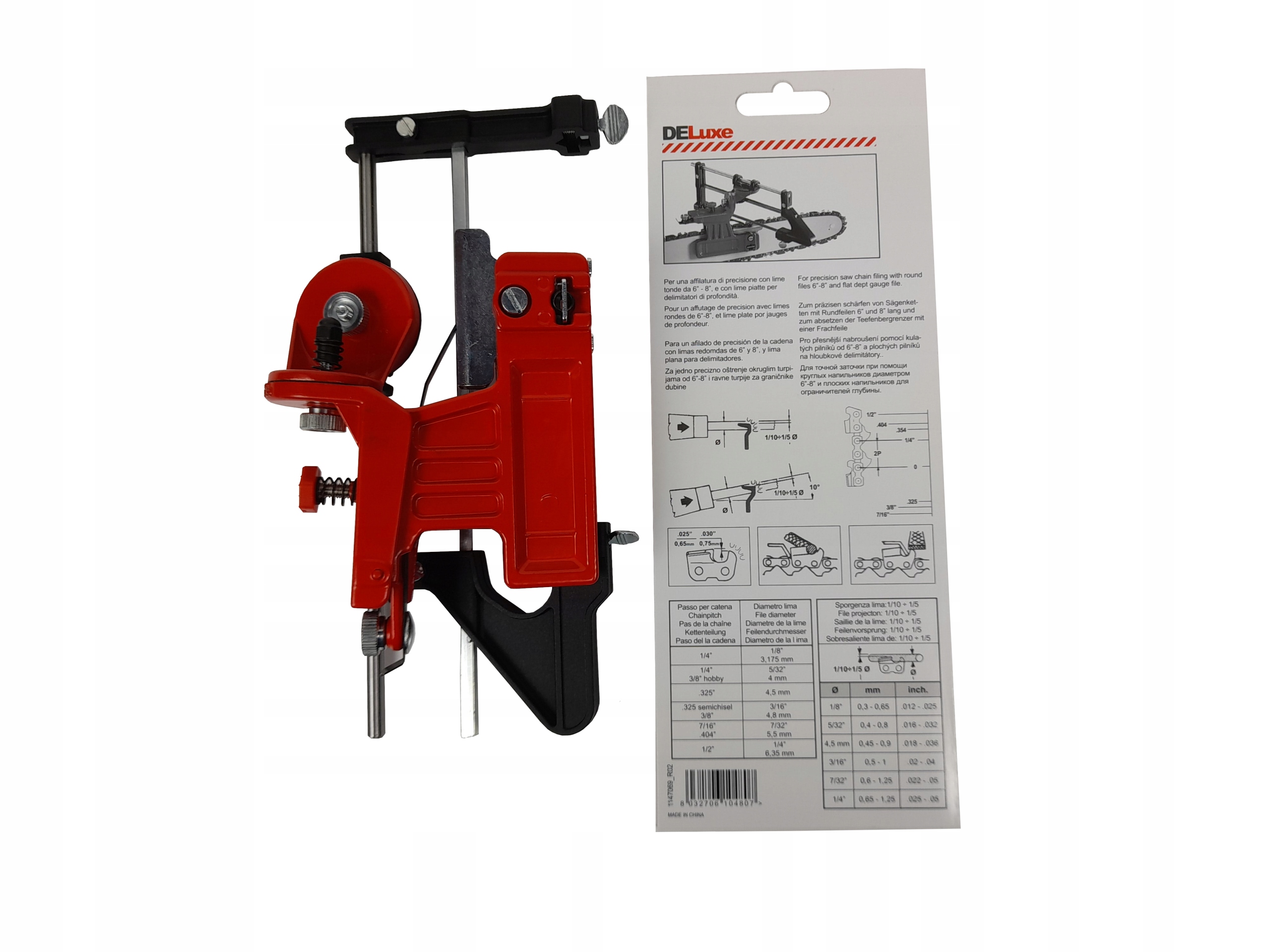 - Hand sharpener for precise sharpening of chain saws directly on the chard guide