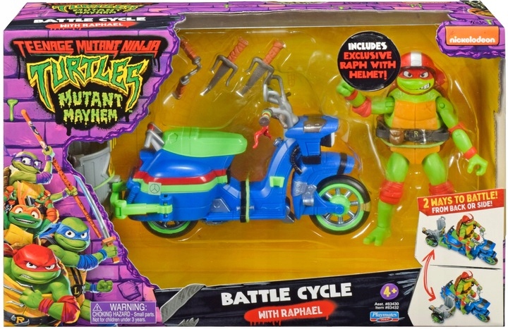 Коли однієї Черепашки-ніндзя недостатньо, щоб впоратися з Суперфлаєм та його бандою, Черепахи закликають Рафу втрутитися та вирішити проблеми під час його битви велосипед. А завдяки бічному причепу кожен брат може приєднатися до Рафаеля та допомогти йому в битві. Причіп можна пересунути з боку назад або назад у бік і заблокувати. Як у фільмі: як показано в хітовому фільмі «Черепашки-ніндзя: Погром мутантів», Черепашки взяли скутер Ейпріл і модифікували його за допомогою трейлера. Чудові особливості: трейлер можна пересувати з боку на спину або назад у бік, і кожна з 4 черепах може комфортно їхати в бій.
