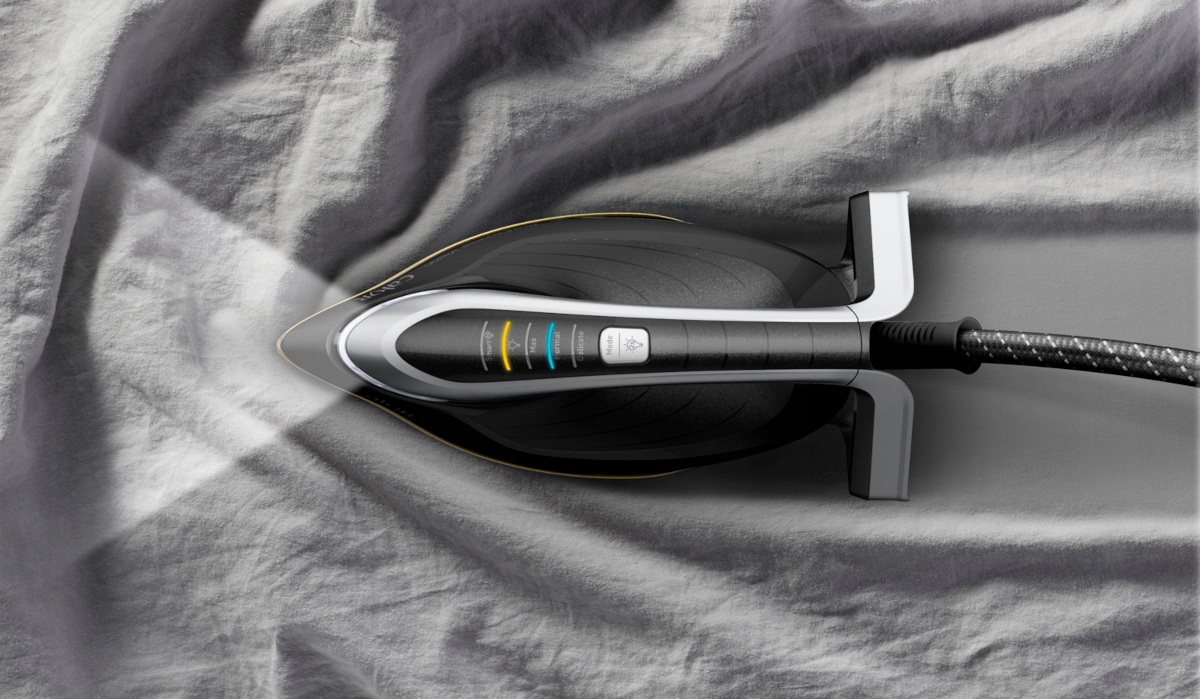 Залізна ручка оснащена панеллю, яка дозволяє вибрати налаштування та зручне управління потужністю пари при прасуванні.