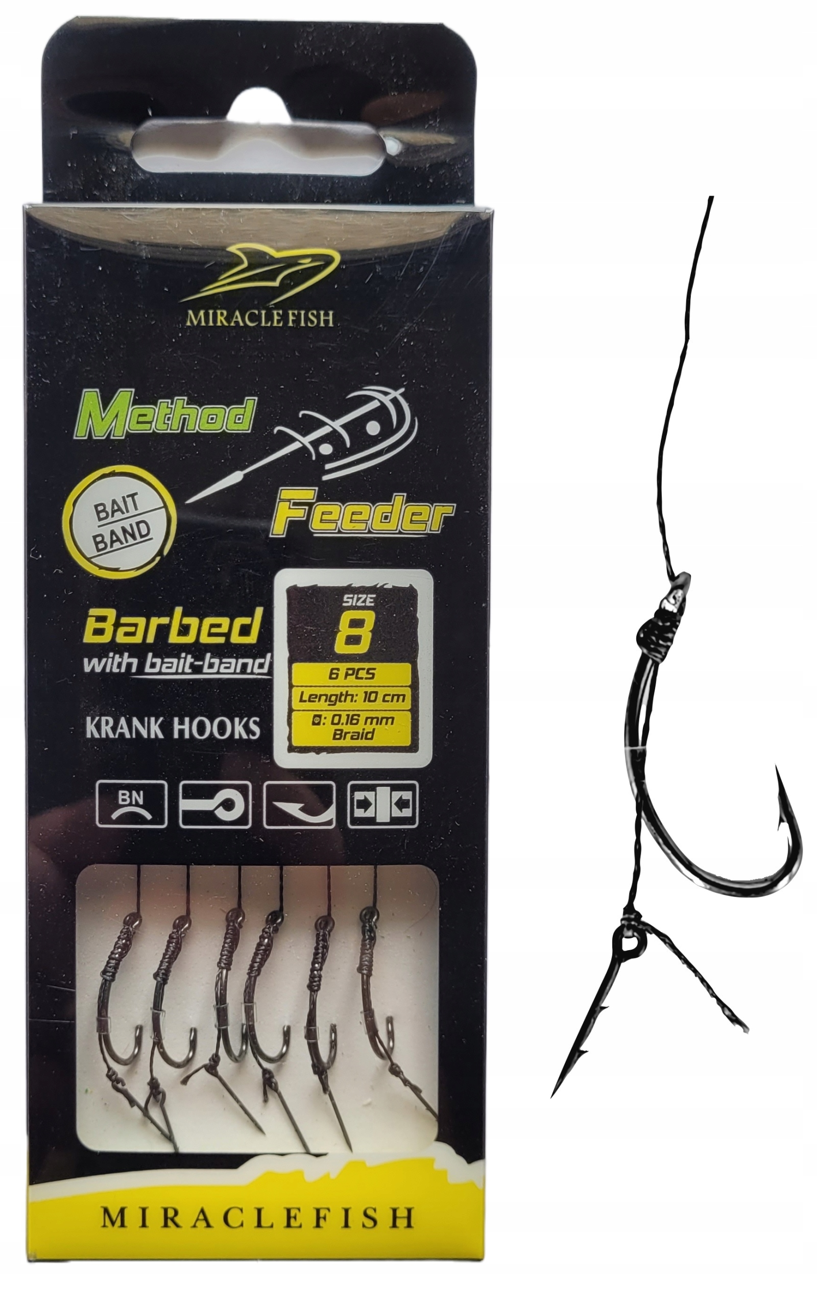 Поводки високого класу для лову на метод фідер, тобто з наживкою. Вони оснащені спеціальною гострою голкою, закріпленою на щетині. Завдяки цьому прикріплення приманок ще ніколи не було таким простим, просто вставте голку в приманку та злегка покрутіть, щоб зафіксувати зубець.
