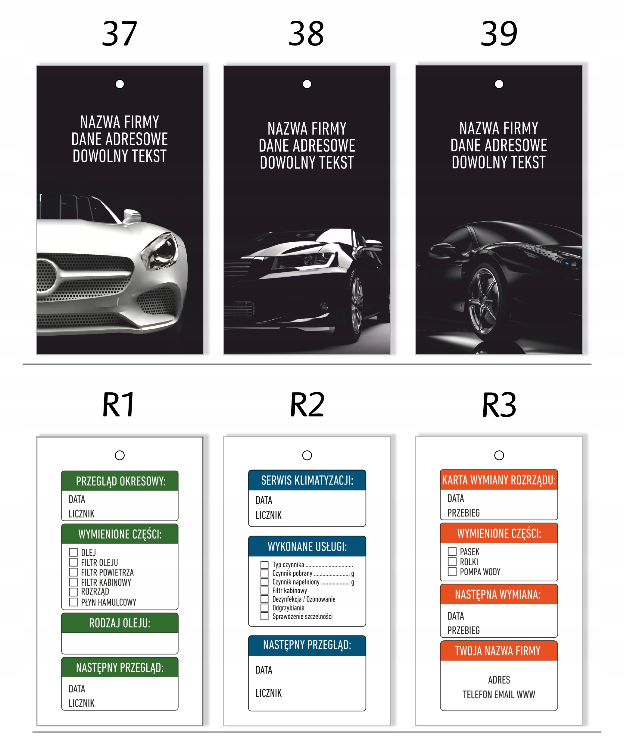 Етикетки, масло, контрольні та сервісні бирки. Вивішується в приміщеннях клієнтів після обслуговування, перевірки та ремонту. Завдяки їм і клієнт, і сервісний центр мають інформацію про дату та хід останнього огляду та обслуговування. Вони полегшують роботу майстерні та прив’язують замовника до сервісу.