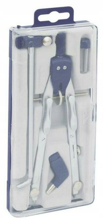 4 елементи в наборі: мікрометричні компаси 172 мм з гвинтовим механізмом (обидва плеча складаються), наконечник компаса з універсальним тримачем, запасний графіт, подовжувач