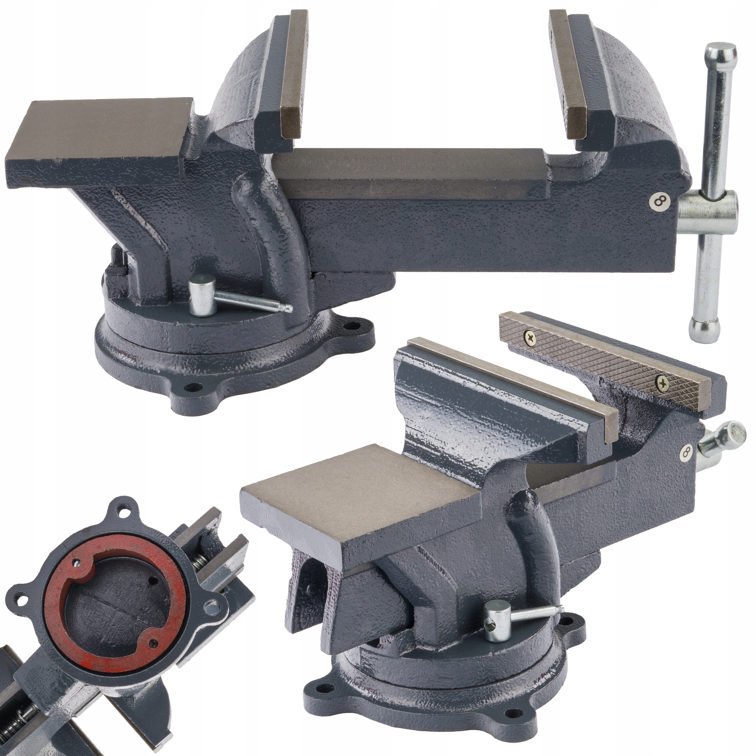 В лещатах можна легко замінити губки за допомогою гвинтів і отворів в основі дозволяють прикріпити лещата до стільниці.