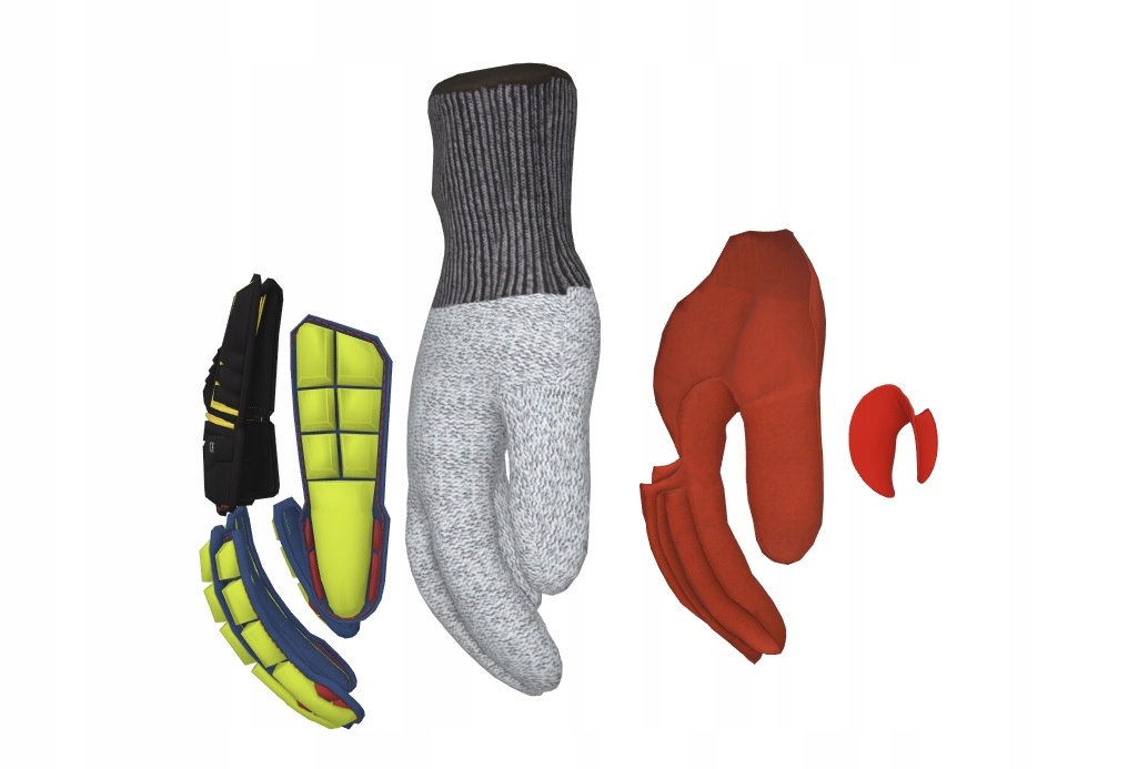 - Термопластичне гумове покриття забезпечує захист тильної сторони долоні та пальців (по всій довжині)