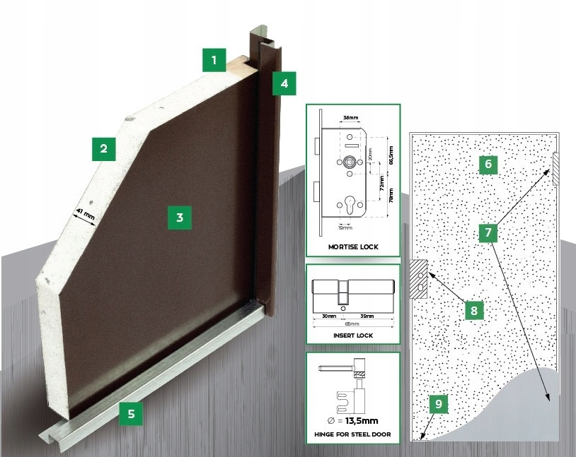 - Дверне полотно оснащене замком. патентована вставка (ручка та вставка не входять).