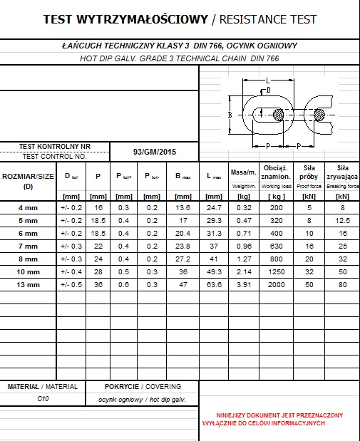 ТЕХНІЧНИЙ ЛАНЦЮГ 5мм КЛАС. 3 DIN 766 - ЗВ'ЯЗКА 30 м