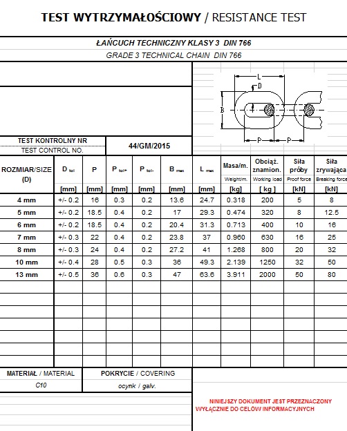 ТЕХНІЧНИЙ ланцюг 5мм KL. 3 DIN 766 - ПУНКТ 30 м