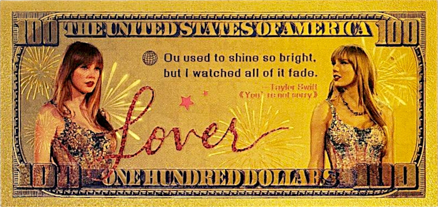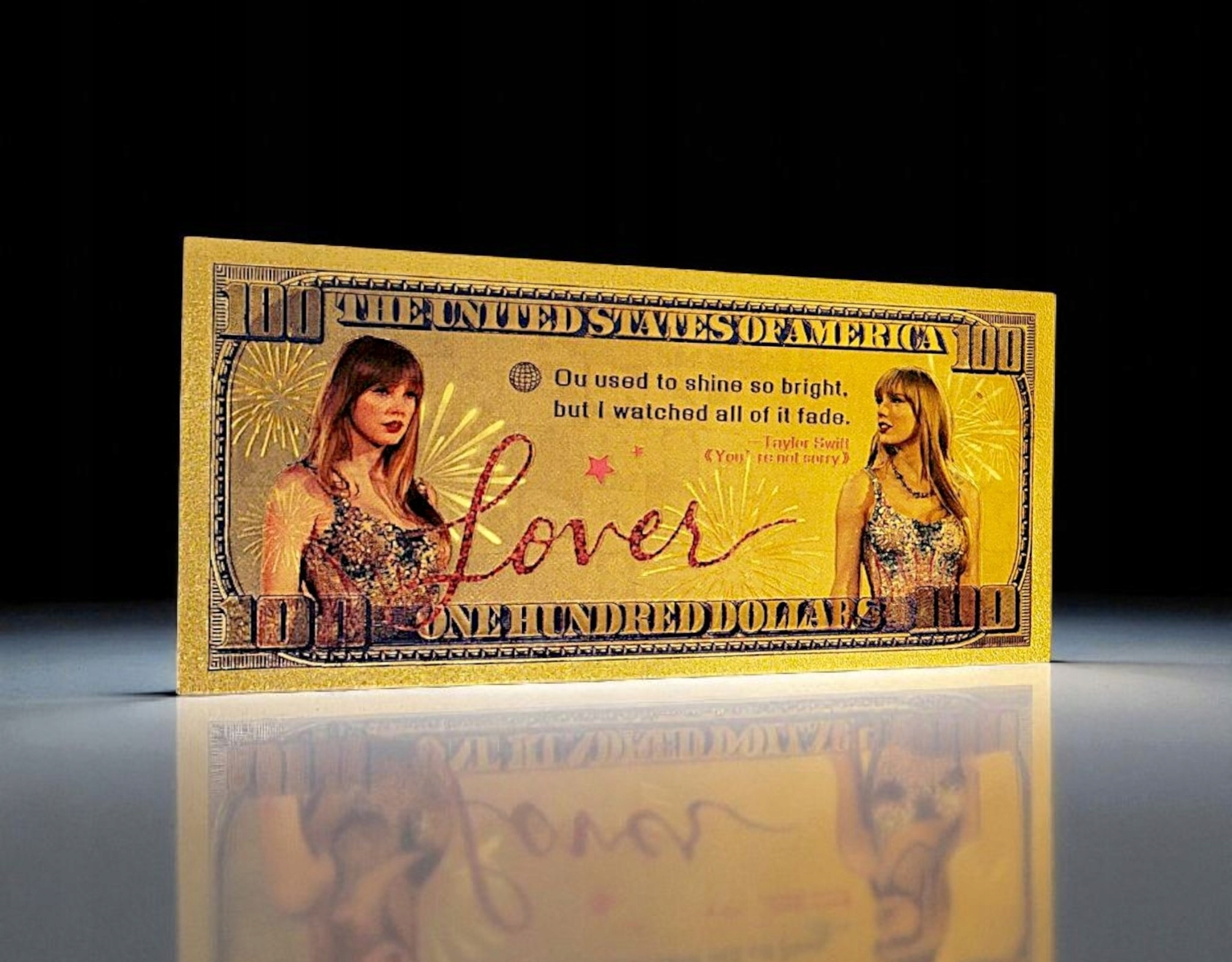 ⭐Предметом аукціону є колекційна банкнота, виготовлена з міцного ПВХ, ретельно позолочена, з ефектним зображенням Тейлор Свіфт – світової ікони поп-музики, автора незліченних хітів і одного з найвпливовіших виконавців сучасності.