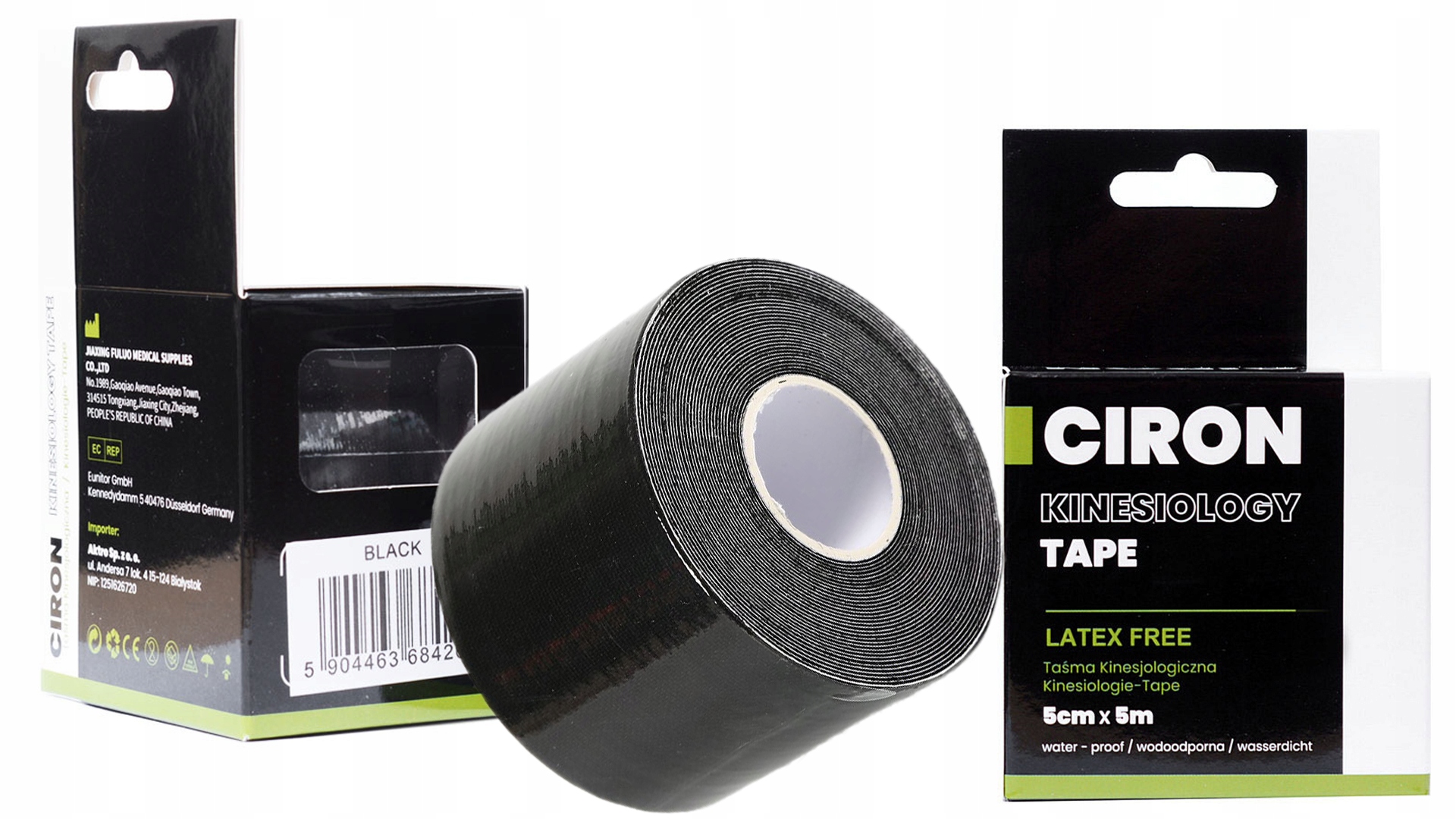 ✅Кінезіологічна стрічка CIRON - гнучка, самоклеюча стрічка чорного кольору