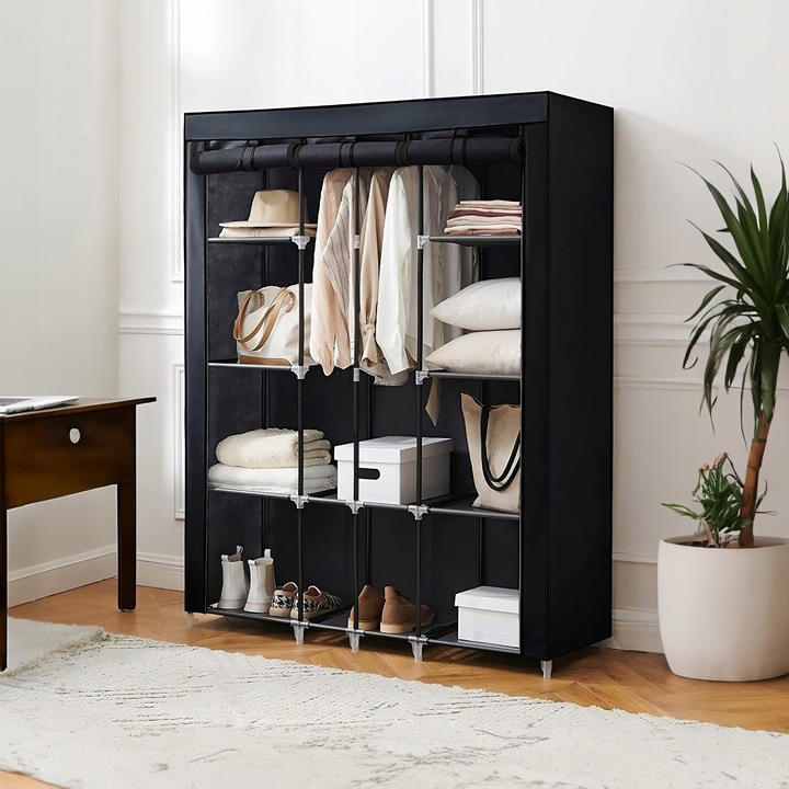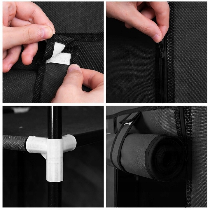 Шафа побудована на основі міцної металевої рами з високоякісними пластиковими з’єднувачами, що робить її довговічною та швидкою для складання – все, що вам потрібно потрібно кілька хвилин! Ідеально підходить для переїзду, подорожей або коли ви часто змінюєте місце проживання.