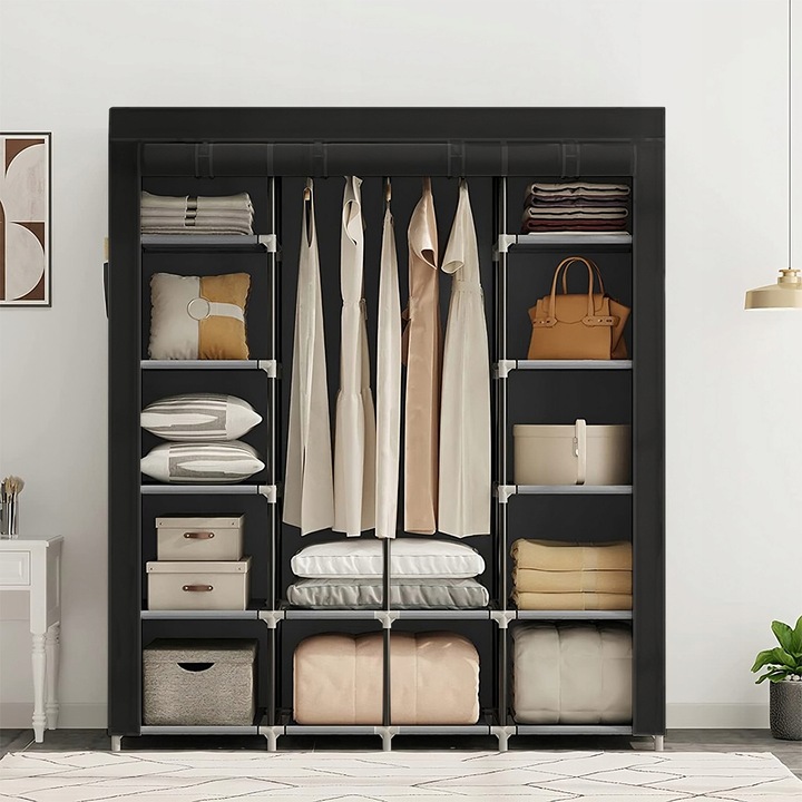 Легка, складна і велика текстильна шафа ідеально замінить традиційні меблі. Він може виконувати роль полиці або цілої шафи, ви можете організувати його відповідно до своїх уподобань!