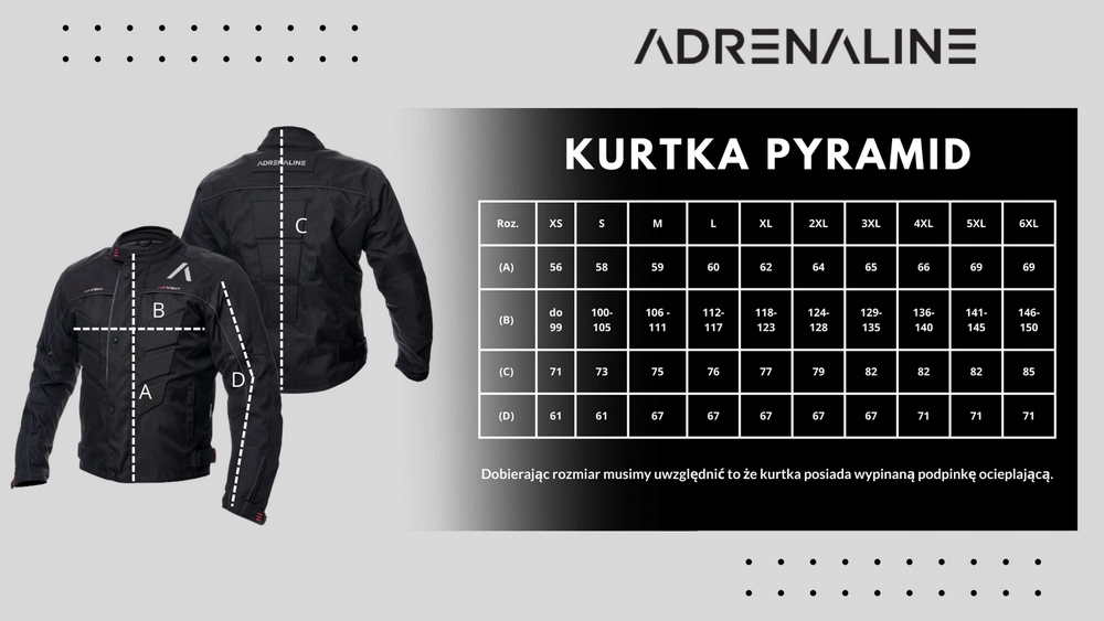 Адреналін піраміду 2.0 PPE - ідеальний текстильний мотоциклетний піджак, для більш тривалих поїздок з мотоциклом, не обмежує рух , а неперешкодження забезпечують вентиляцію комфорт у довшій мотоциклічній подорожі. Крім того, піджак має побудовану мембрану та знімний ізоляційний вкладиш , завдяки якому він працює в різних погодних умовах, також у більш прохолодні дні. Він має простий, класичний виріз і ідеально відповідає оголеним мотоциклам та повсякденним водінням міста.