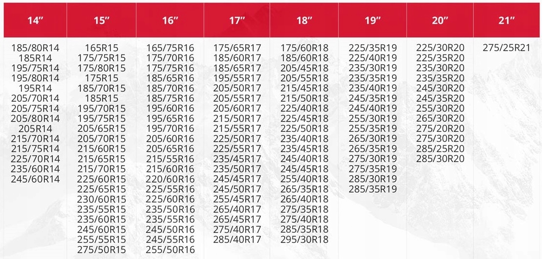 - Рекомендовано для легкових автомобілів, фургонів, мікроавтобусів, позашляховиків і 4x4.