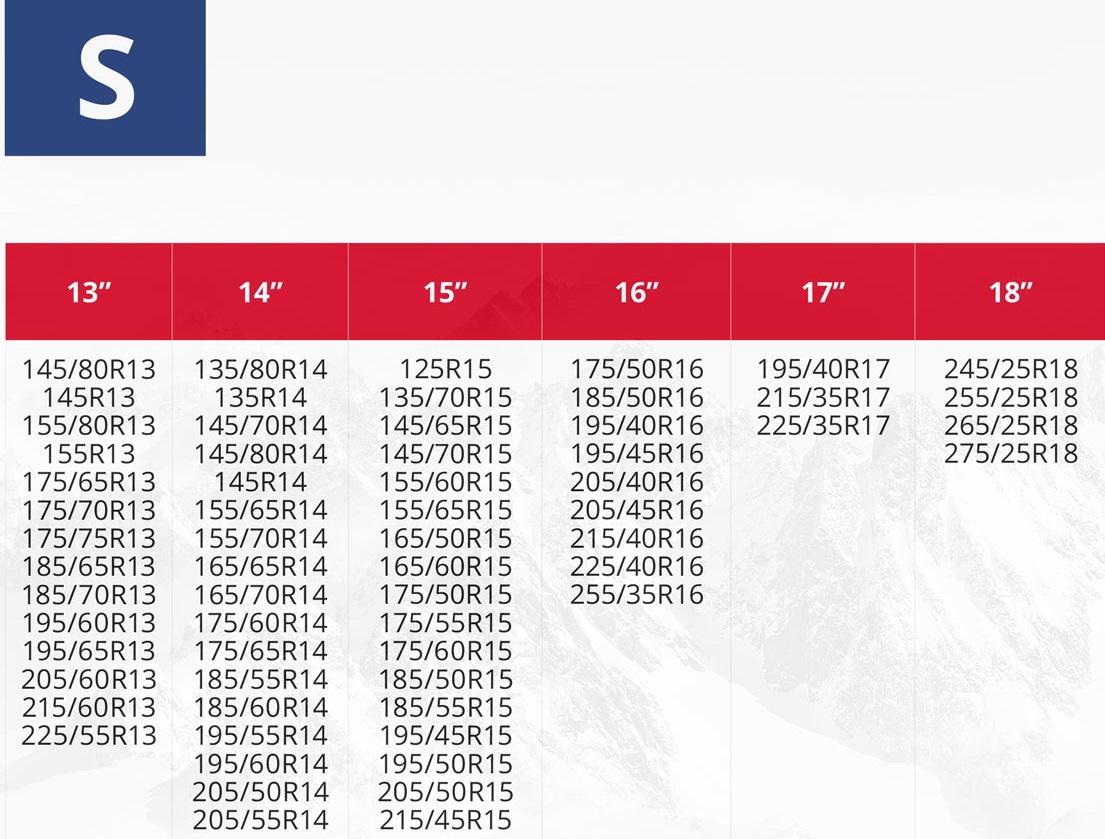- Сумісність: Розмір S підходить для широкого діапазону шин, що робить їх універсальним рішенням для багатьох моделей автомобілів.