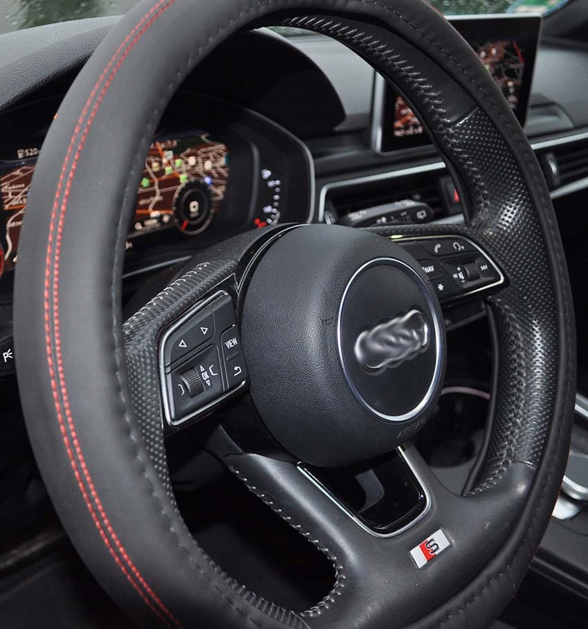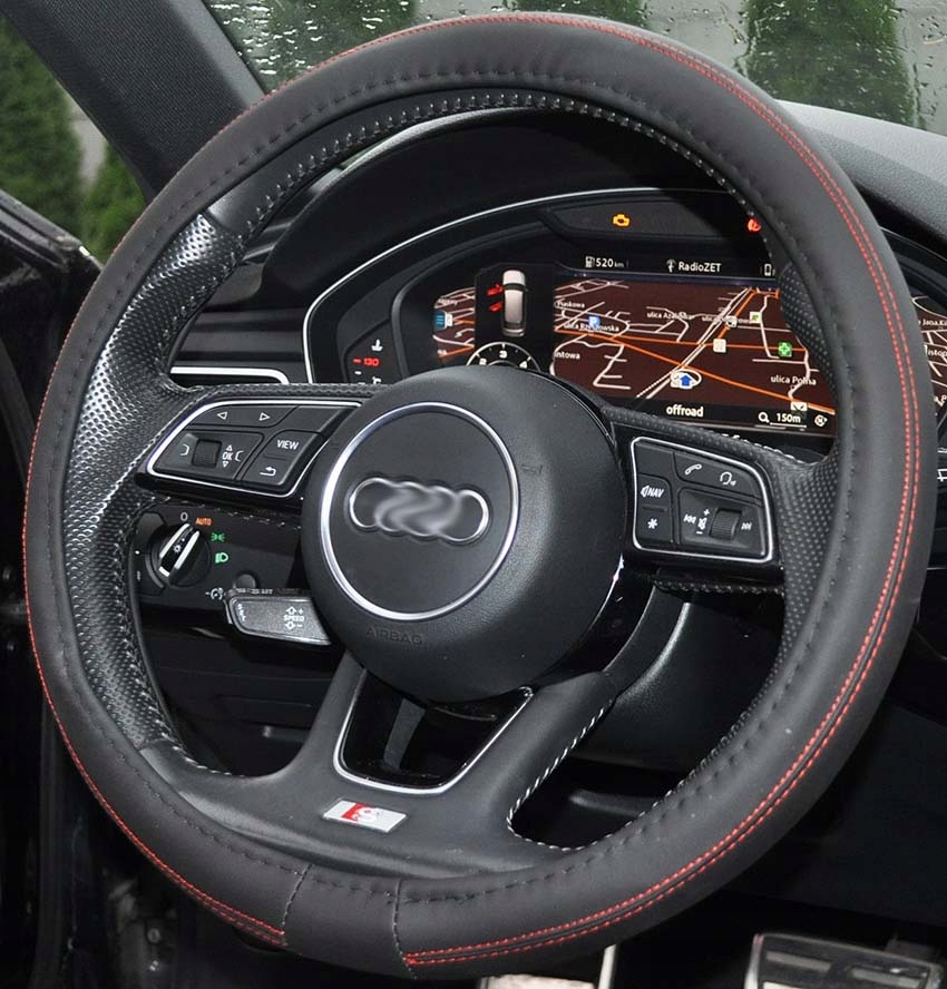 ТЕКСТИЛЬНИЙ ЧОХОЛ НА РУЛЬМО з червоною ниткою (М) 37-39