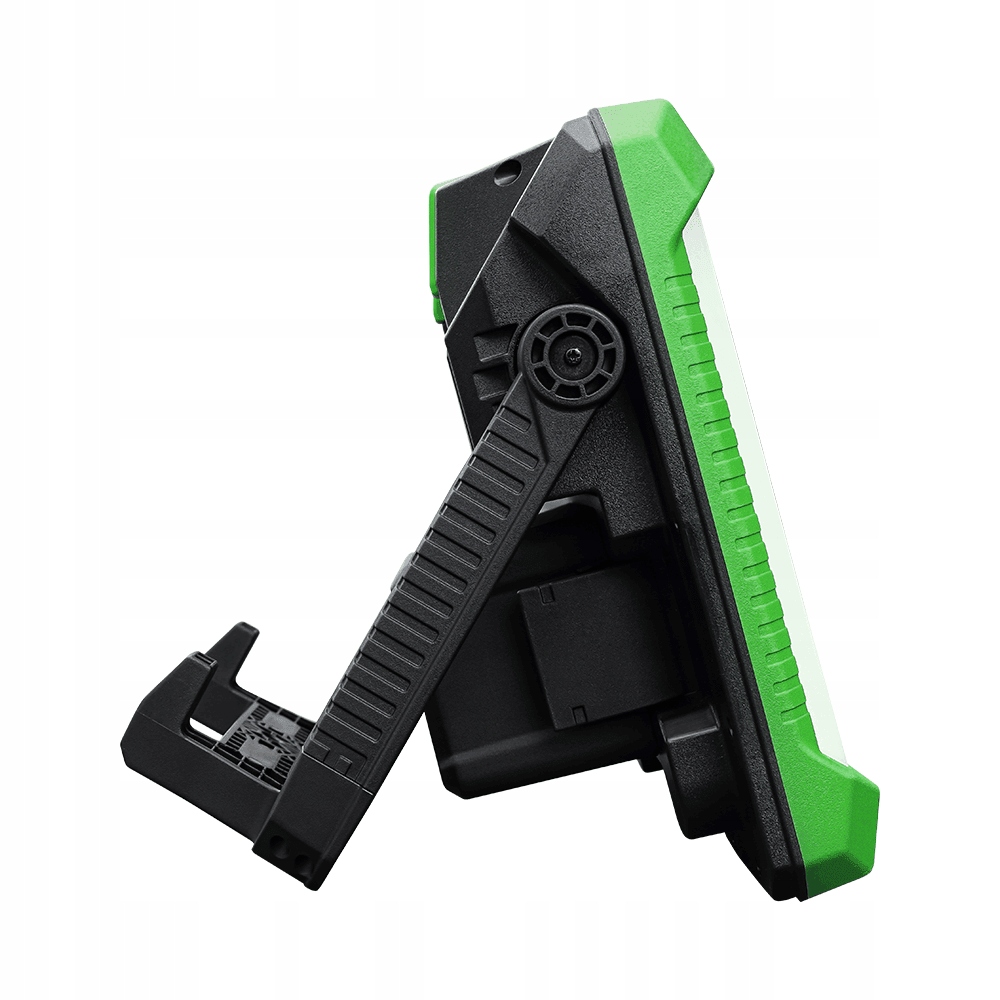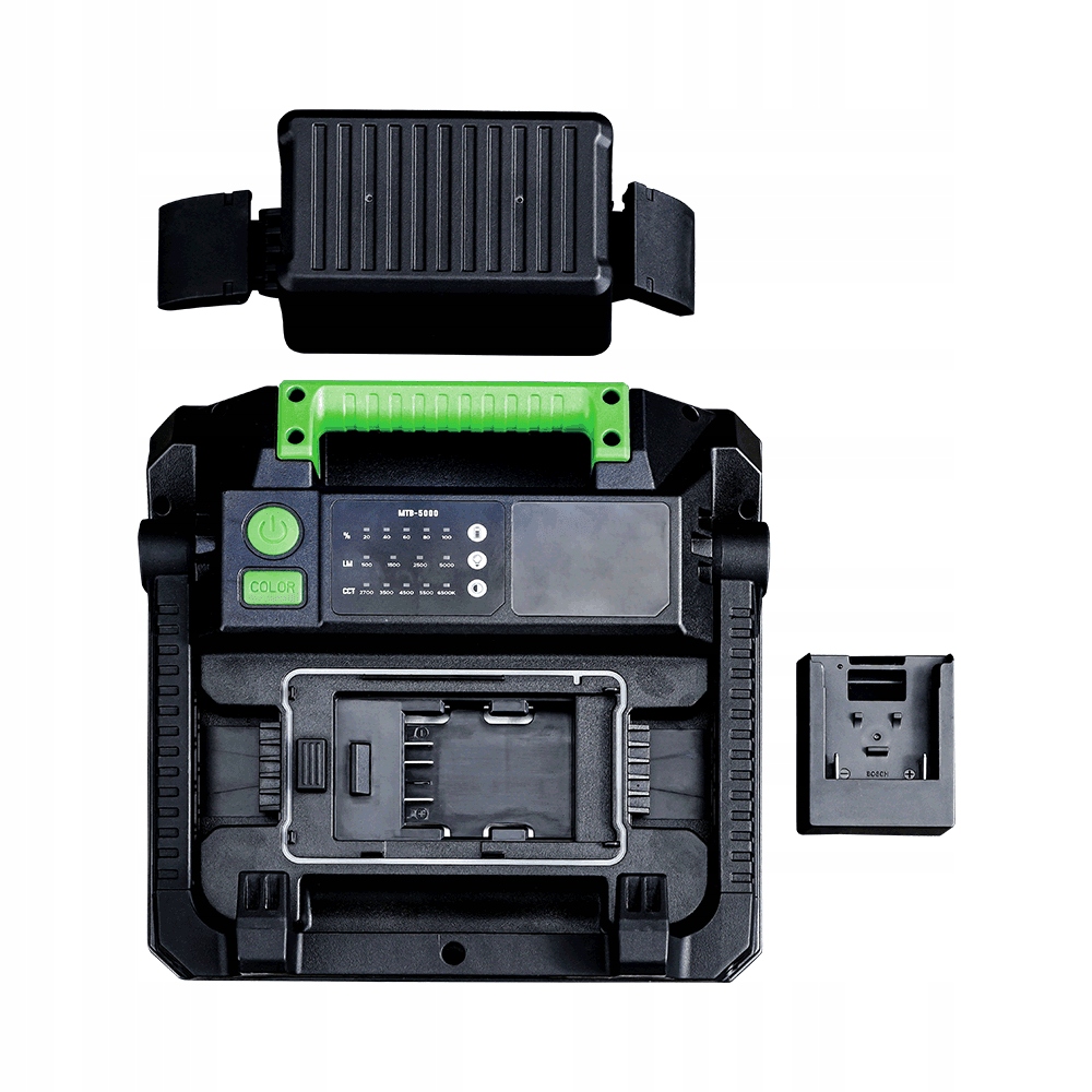 Компактний світлодіодний прожектор для професійного використання. Забезпечує рівномірне і стабільне спрямоване освітлення. Виготовлений з ударостійкого поліпропілену (ПП). Менший розмір і компактна конструкція роблять його більш зручним для транспортування. Оснащений вимикачем з 4-ступінчастим регулюванням світлового потоку. Додаткова кнопка дозволяє регулювати колір світла в діапазоні: від 2700K до 6500K. Лампа сумісна з акумуляторами 18V таких виробників, як: Bosch (18V Professional), Milwaukee, DeWalt, Metabo. Пристрій має дисплей, на якому відображається рівень заряду акумулятора.