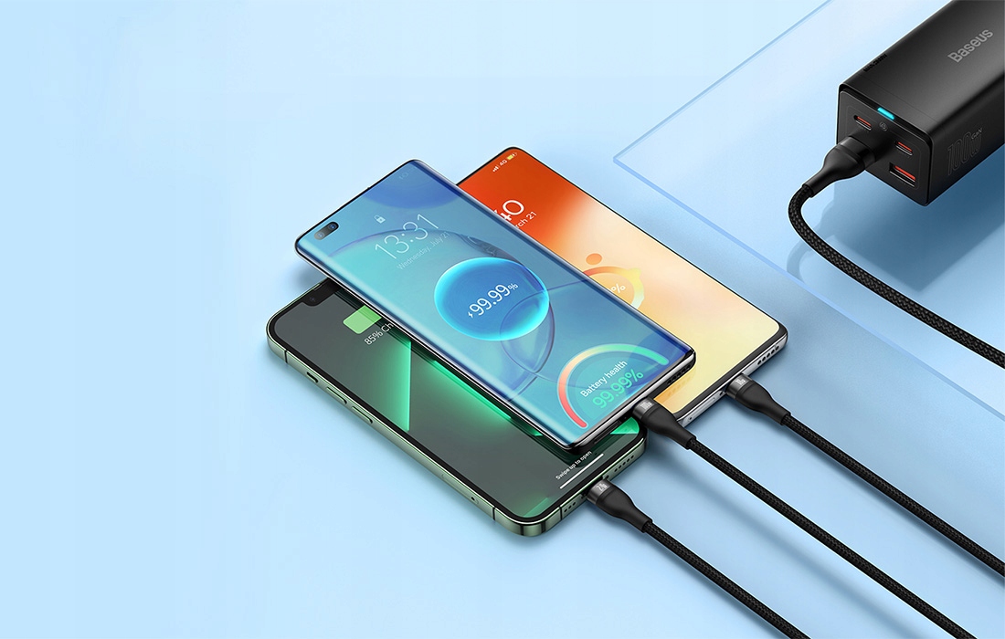 ✔️ Швидке заряджання: Завдяки потужності до 100 Вт він дозволяє швидко заряджати різні пристрої, наприклад Honor 50 Pro до 100% за 27 хвилин або Huawei Mate 40 Pro до 86 % приблизно за 30 хвилин.
