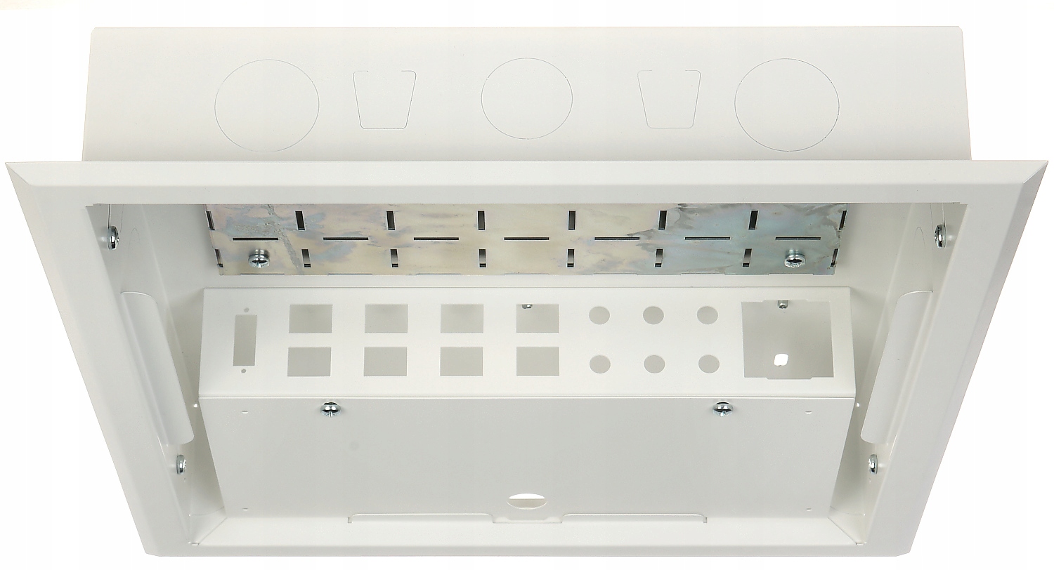 Забезпечена монтажна пластина з розмірами: 280 х 200 мм 2 клавіші включені Ідеальне обличчя зі стіною Дуже проста і швидка збірка Естетичні та суцільні показники Житло проходить сигнали Wi -Fi, Місце для роз'ємів: 8x Keystone, 6x "F", 1x SC Duplex, 1x Електрична розетка
