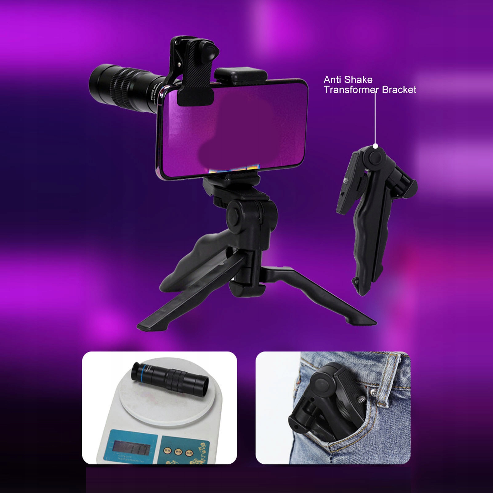 3. Універсальний затискач: Телескоп-монокулер для мобільного телефону постачається з універсальним затискачем для легкого встановлення та зняття об’єктива мобільного телефону, його можна закріпити майже на всіх смартфонах, відкрити мобільну камеру та переконатися, що центр об’єктива та центр камери знаходяться на одній лінії.