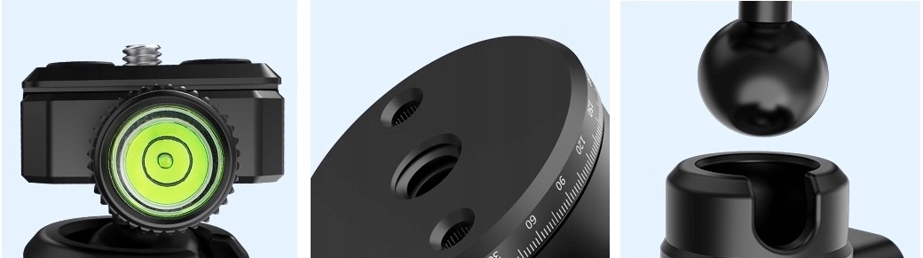 Завдяки кульовому шарніру ви може плавно і точно встановити будь-який кут нахилу камери / камери, встановленої на голові.
