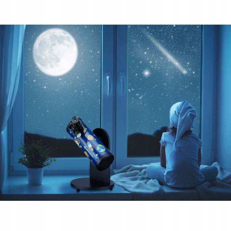 Оснащений дзеркалом діаметром 76 мм і фокусною відстанню 300 мм, телескоп збирає в 117 разів більше світла, ніж неозброєним оком, тому ви можете бачити яскраві зображення улюблених об'єктів на нічному небі. Два окуляри, що входять у комплект, забезпечують два збільшення. Почніть свої спостереження з 20-мм окуляра, який збільшить об’єкти, які розглядаються в телескоп, у 15 разів. Щоб побачити більше деталей спостережуваних об’єктів, використовуйте окуляр діаметром 6 мм із 50-кратним збільшенням.