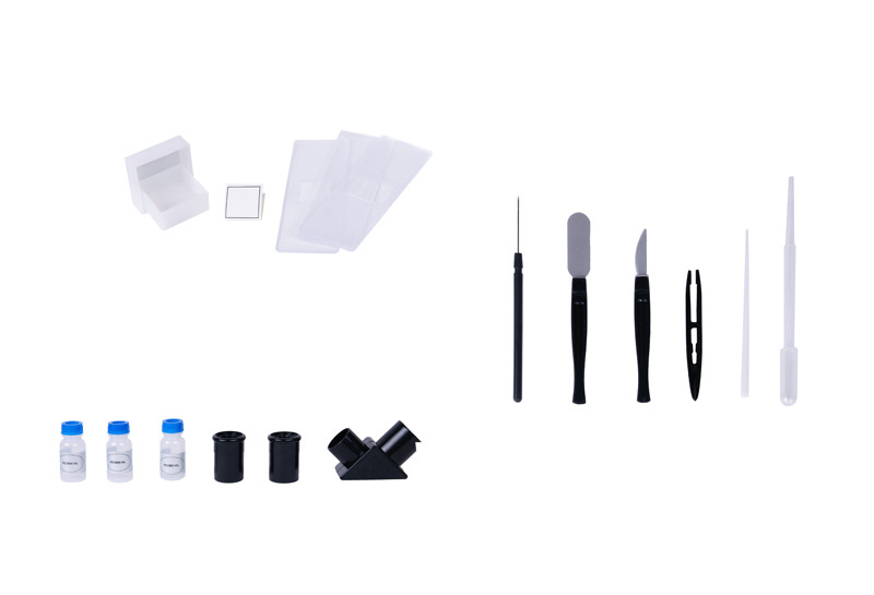У коробці ви знайдете готові мікроскопічні зразки, які можна переглянути одразу після виймання з упаковки, а також матеріали для приготування власних препаратів – предметні стекла, інструменти для прецизійної роботи та флакони для реактивів. Цей ідеальний подарунок вам не набридне!