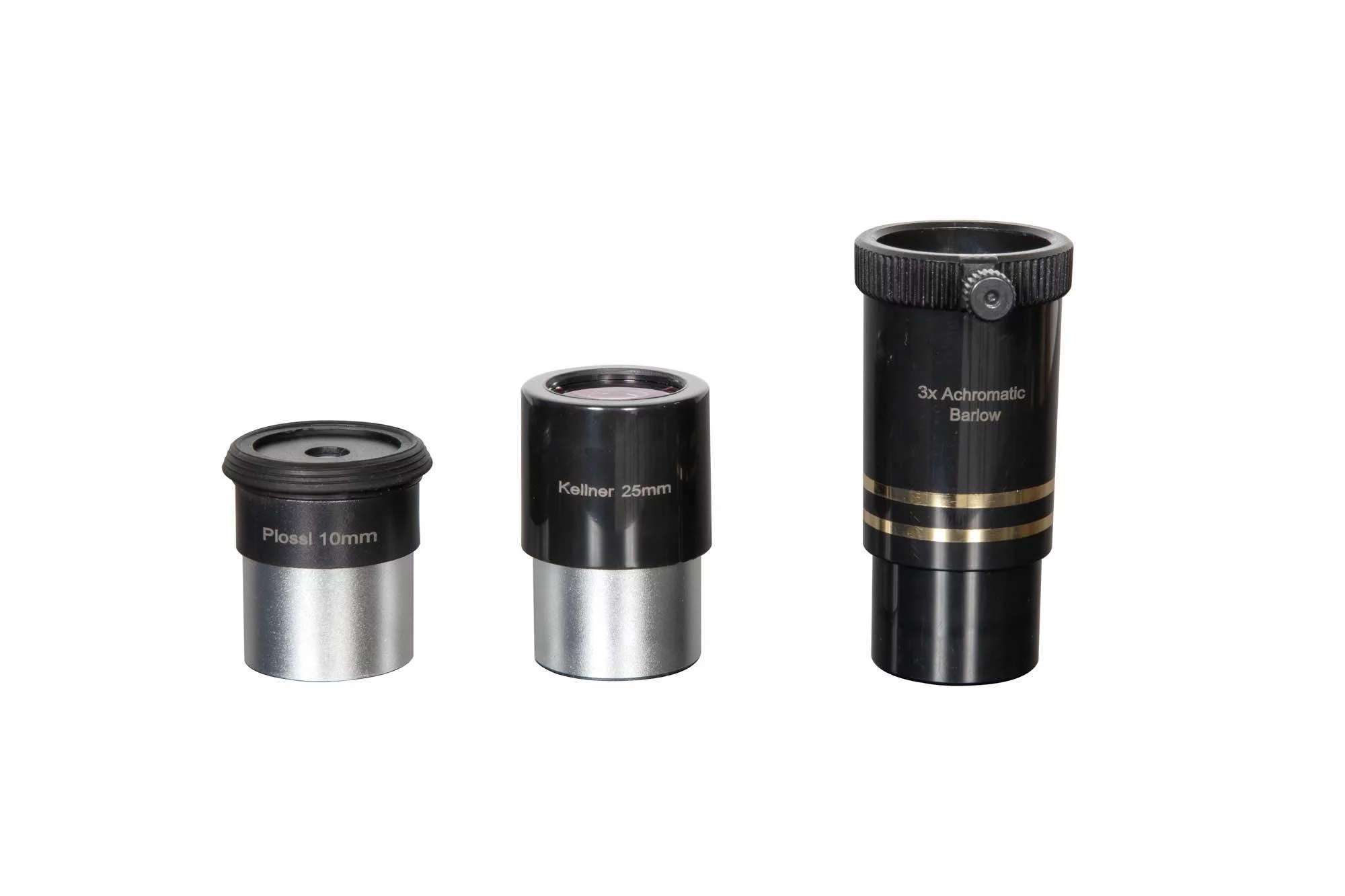 Телескоп Stargaze оснащено 2 змінними окулярами та лінзою Барлоу, що робить збільшення телескопа потрійним! Незважаючи на компактні розміри, це обладнання сумісне з професійними аксесуарами стандарту 1,25". Це означає, що в нього вміщуються компоненти від набагато більших і дорогих телескопів, що дає можливість розширити набір,