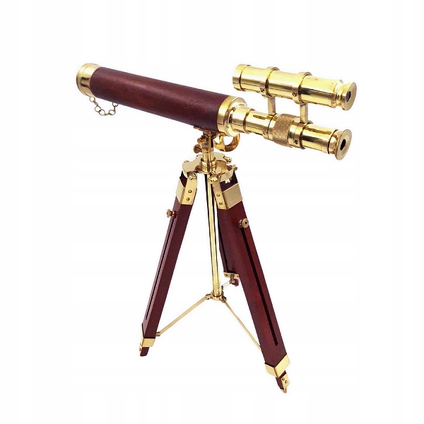 ТЕЛЕСКОП, ЛАТУНЬ, ШКІРА, НА ДЕРЕВ'ЯНОМУ РОЗШИРНОМУ ШТАТИВІ, КОЛОНІАЛЬНИЙ