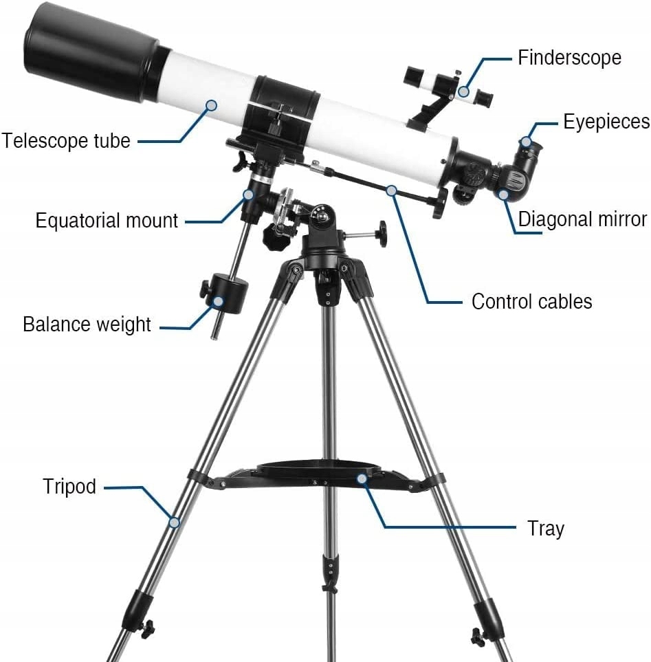 В комплект входить все, що ви виробник, телескоп, штатив і повний набір аксесуарів.