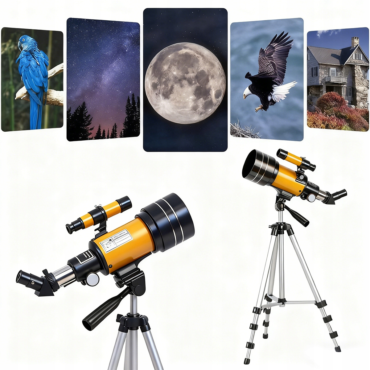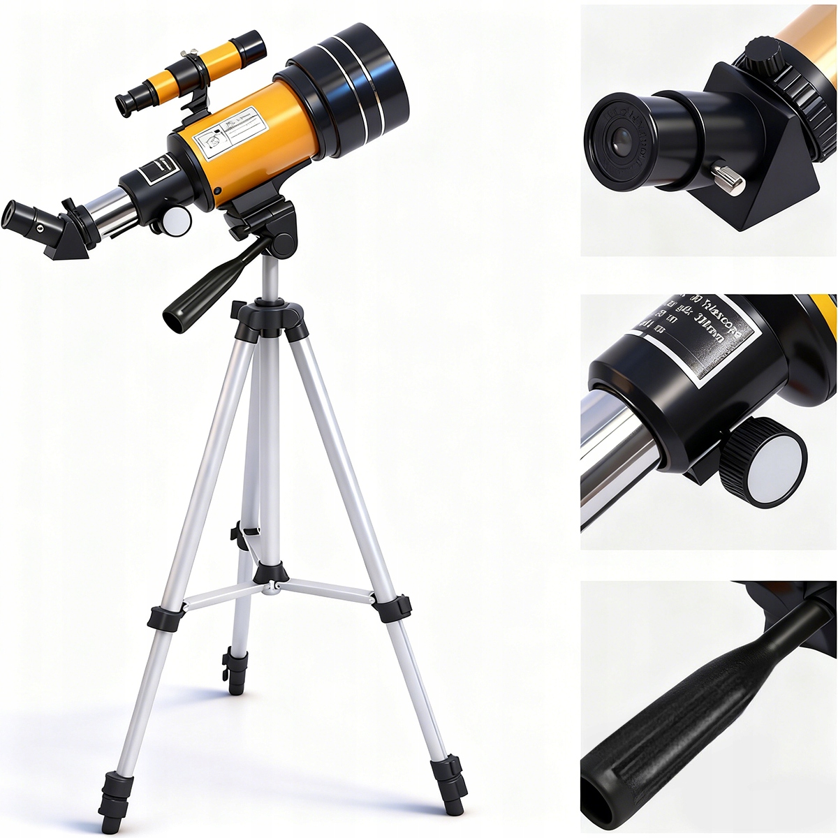 Наш астрономічний телескоп — це герметичний монокулярний телескоп-рефрактор, який запобігає конвекції повітря та забезпечує чіткі та стабільні зображення. Оснащений об’єктивом з великою апертурою 70 мм і фокусною відстанню 300 мм, наш астрономічний телескоп-рефрактор забезпечує чіткіші та яскравіші зображення порівняно з іншими телескопами з малою апертурою.