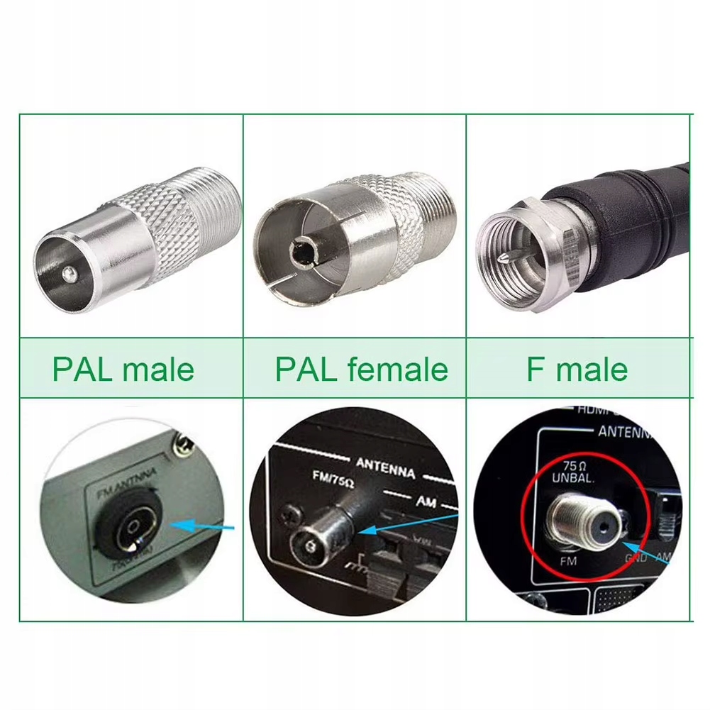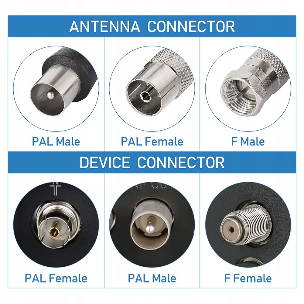 FM телескопічна антена 75 Ом - антена DAB+, кімнатна, з 3 адаптерами для різних типів входів
