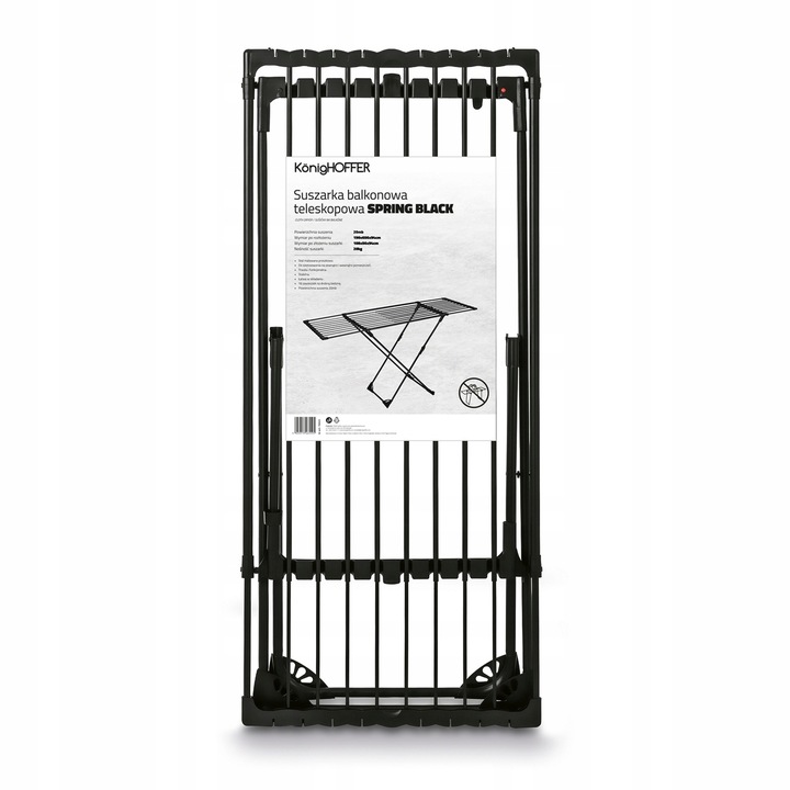 Балконна сушарка Konighoffer Spring Black 108-190 x 56 x 94 см забезпечує зручну сушку білизни в будь-яких умовах (балкон, сад, квартира). За допомогою нього можна розвісити мокрий одяг для всієї родини, а також постільну білизну. У цьому вам допоможе телескопічна конструкція. Загальна площа сушіння даної моделі становить 21 м. Завдяки міцній сталевій конструкції сушарка прослужить роками. Подушечки для ніг зменшують можливість ковзання на гладкій підлозі. Два з них мають колеса для переміщення виробу. Вони не подряпають ваші панелі. Модель легка і зручна для зберігання. Він буде стійко стояти навіть під час сильних поривів вітру. Він навіть має спеціальні вішалки для тканин і шкарпеток, щоб вмістити якомога більше білизни. Чорний колір підкреслює стильний зовнішній вигляд балконної сушарки XL!