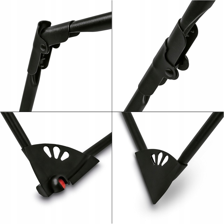 - можливість подовження штанг до 135 см після складання бічної опори (натиснувши червону кнопку, одночасно потягнути бічну опору вниз і встановити її паралельно ніжкам сушарки)