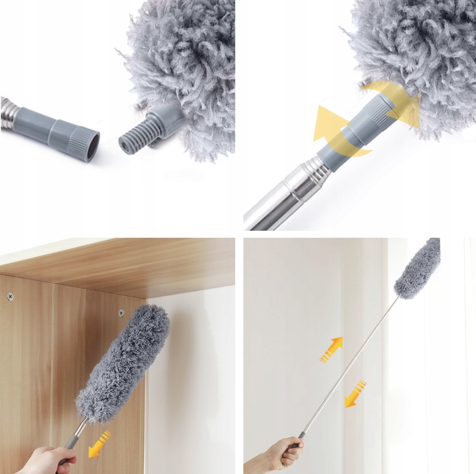 Пилососить меблі, видаляє павутину зі стелі та стін, очищає верхні частини шаф і внутрішню частину шаф, а також може використовуватися для чищення рулонних штор і жалюзі. Де б не був пил, щітка працюватиме ідеально. Завдяки телескопічній ручці ми можемо легко регулювати довжину щітки відповідно до наших поточних потреб і досягати високих місць без використання драбини. Тоді, після використання, щітку можна легко скласти та зберігати в шафі чи ящику, тому вона займає мало місця.