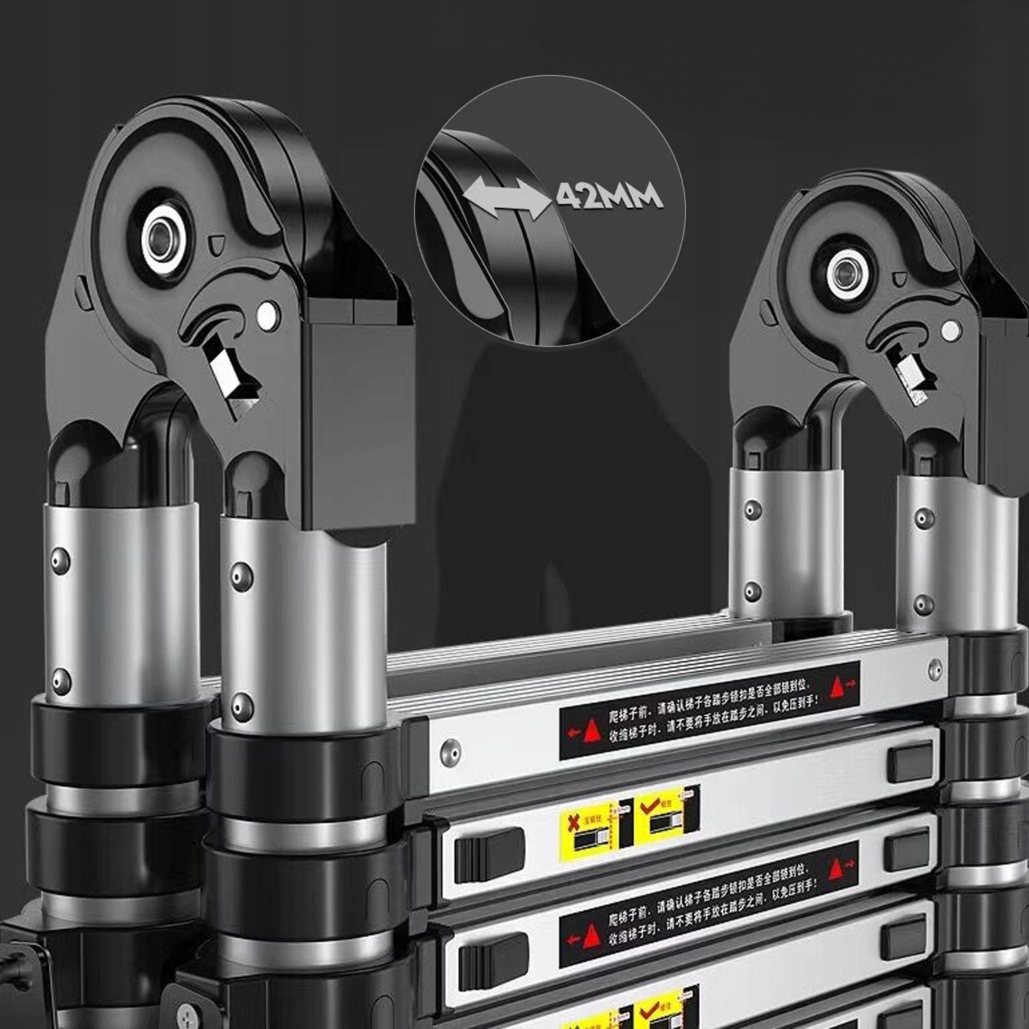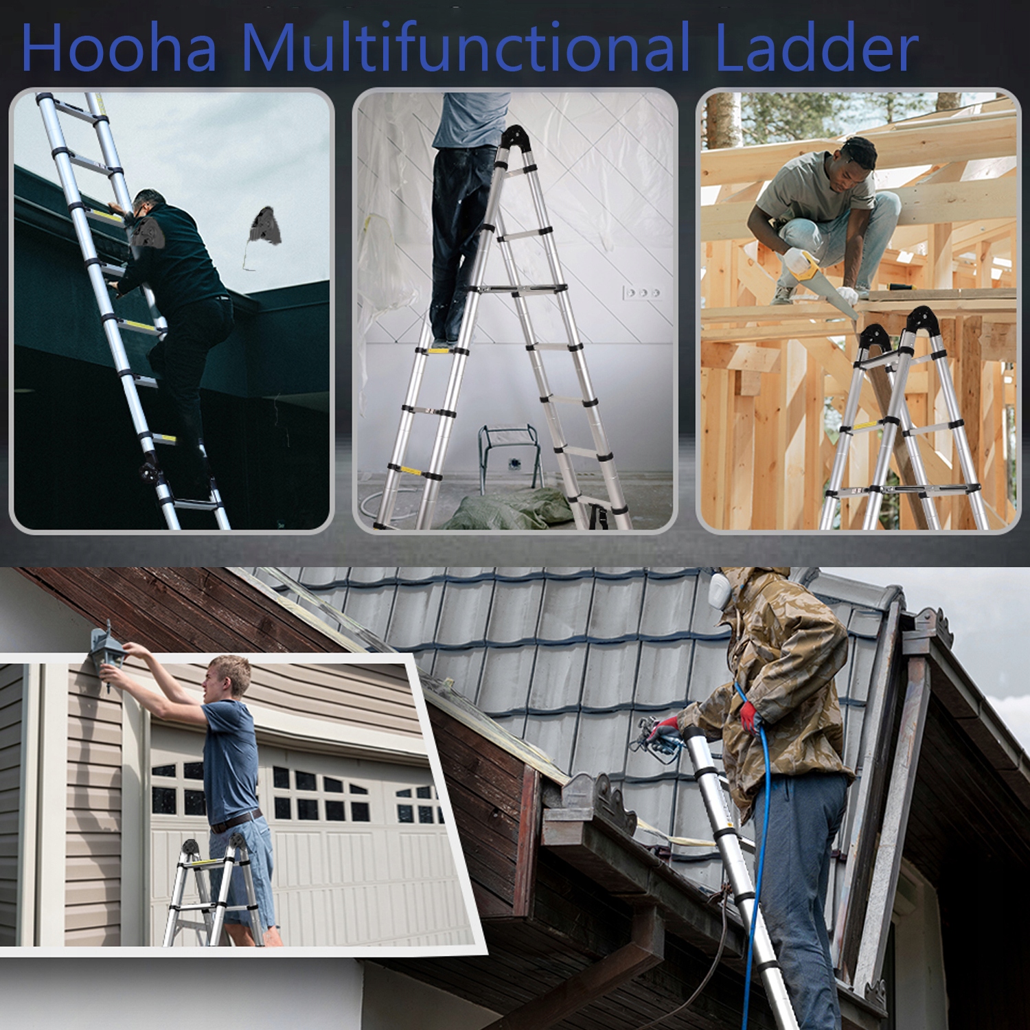 Совча драбина може бути використана як драбина рамки A (3,3 м + 3,3 м) або пряма драбина (6,6 м). Висоту робочої сили можна постійно регулювати, що дозволяє встановити правильну висоту залежно від ваших потреб. Його можна широко використовувати для домашніх завдань, таких як зміна цибулин, очищення вікон, садівництво та інженерні потреби. Це також необхідний інструмент.