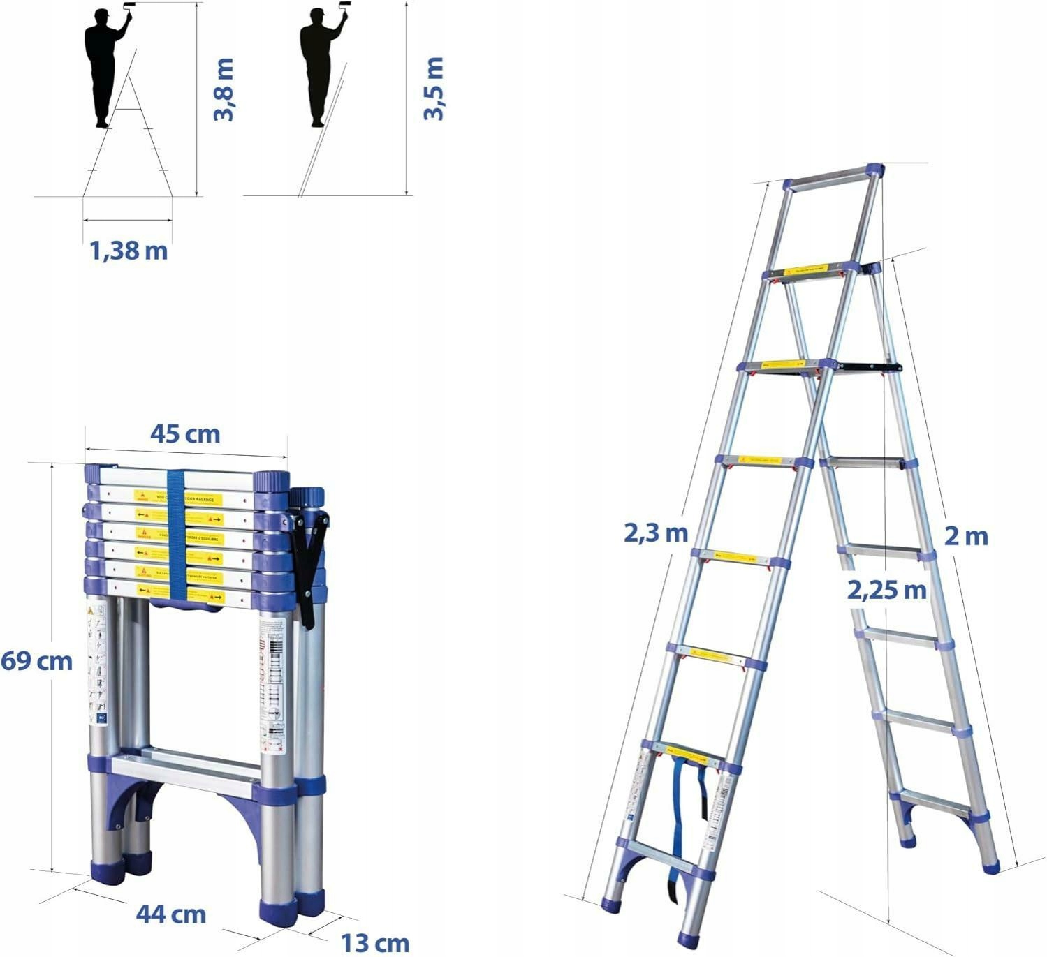 Телескопічна драбина Hostrom ExtendAct8 з 8 градусами 2,3 м+2м алюміній