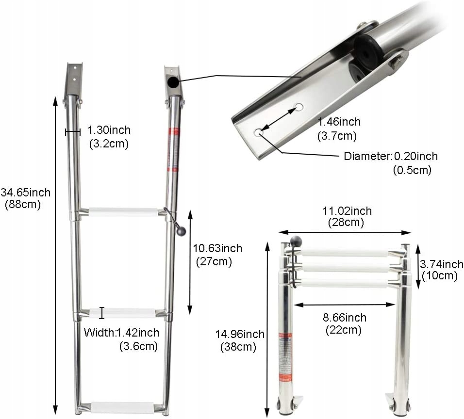 Високоякісна складна триступенева драбина з нержавіючої сталі формату А4 (полірована) для яхти, човна або моторного човна.