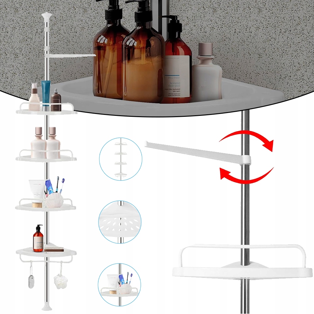 ✅ 4 рівні - Стійка для ванної кімнати оснащена 4 поличками зі зливними отворами, які можна самостійно відрегулювати на різних висотах і обертатися навколо осі кріплення.