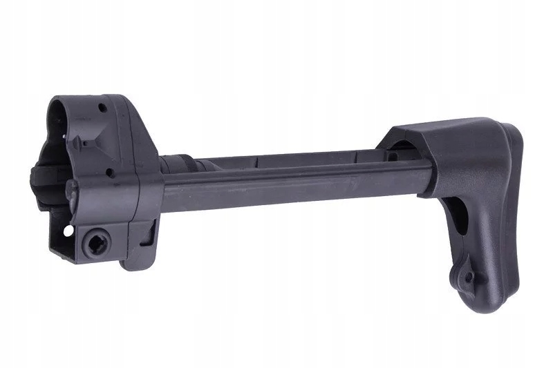 Розроблена для реплік телескопічної качани MP5 MP5. Він має регульовану довжину, завдяки якій ми маємо можливість відповідати довжині репліки для конструкції та уподобань стрільця. Суп був виготовлений з міцного пластику, закінченого гумовою ногою. Посібник виготовлений з металу.